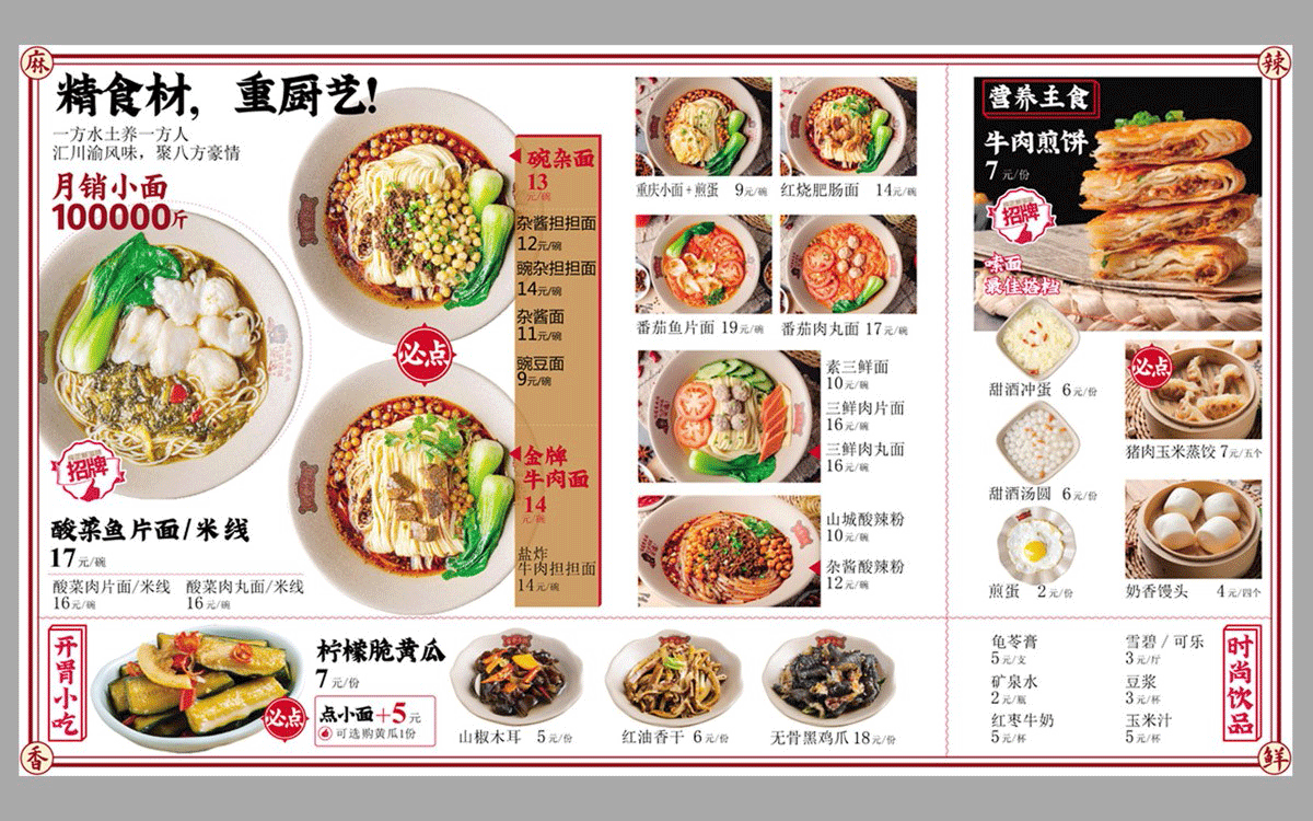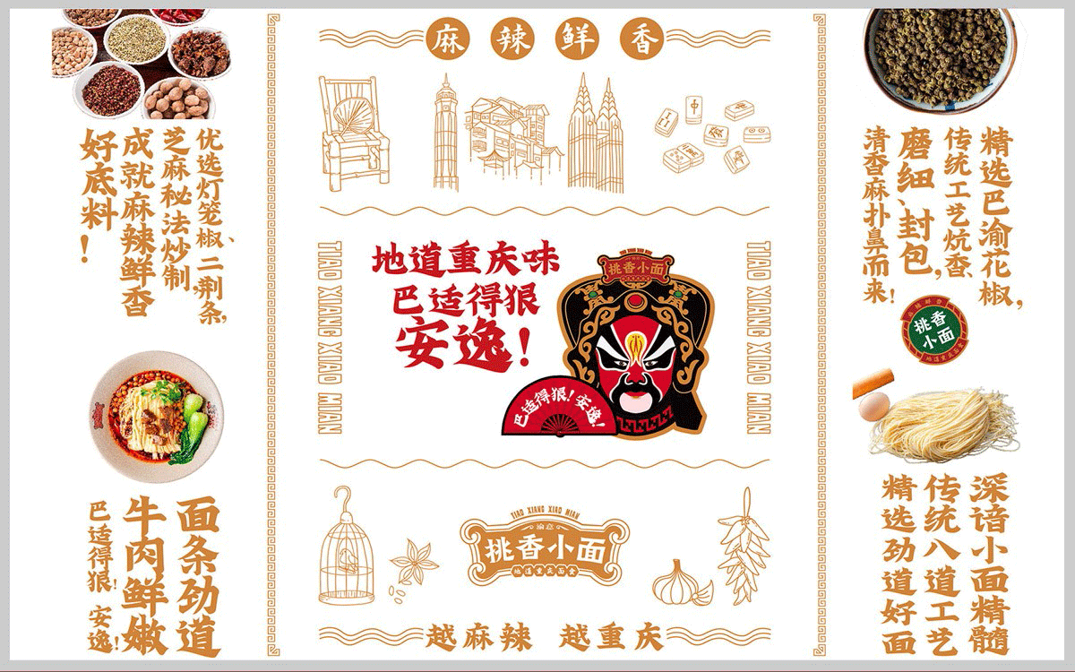 演繹巴渝文化 塑造地道“重慶小面”。 我們希望用有溫度的,有記憶的,老百姓生活出來的文化賦予餐飲品牌一種能量,這種能量不具有攻擊性,不是炫耀,也不是空中樓閣,而是一種地道的、天然的、好吃的,能會心一笑的喜歡。我們認為餐飲品牌需要的是溫度,是人情味,是不需要擺譜就能回味無窮的味道。 2019年底,中世銳意設計接受渝意餐飲委托,對其下屬品牌“挑香小面”進行整體品牌形象升級設計。